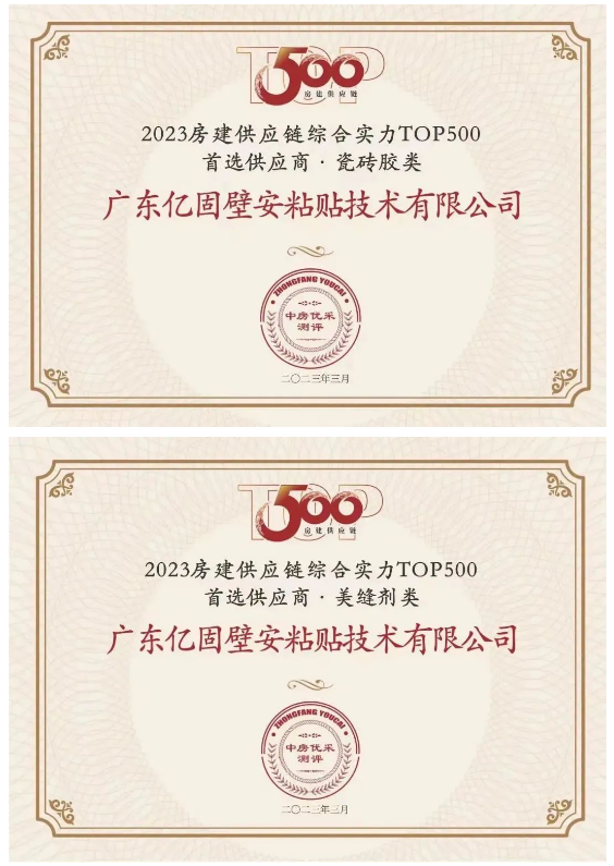 據悉,這是億固公司連續第4年榮登“中國房地產開發企業500強首選瓷磚膠類品牌”榜單。